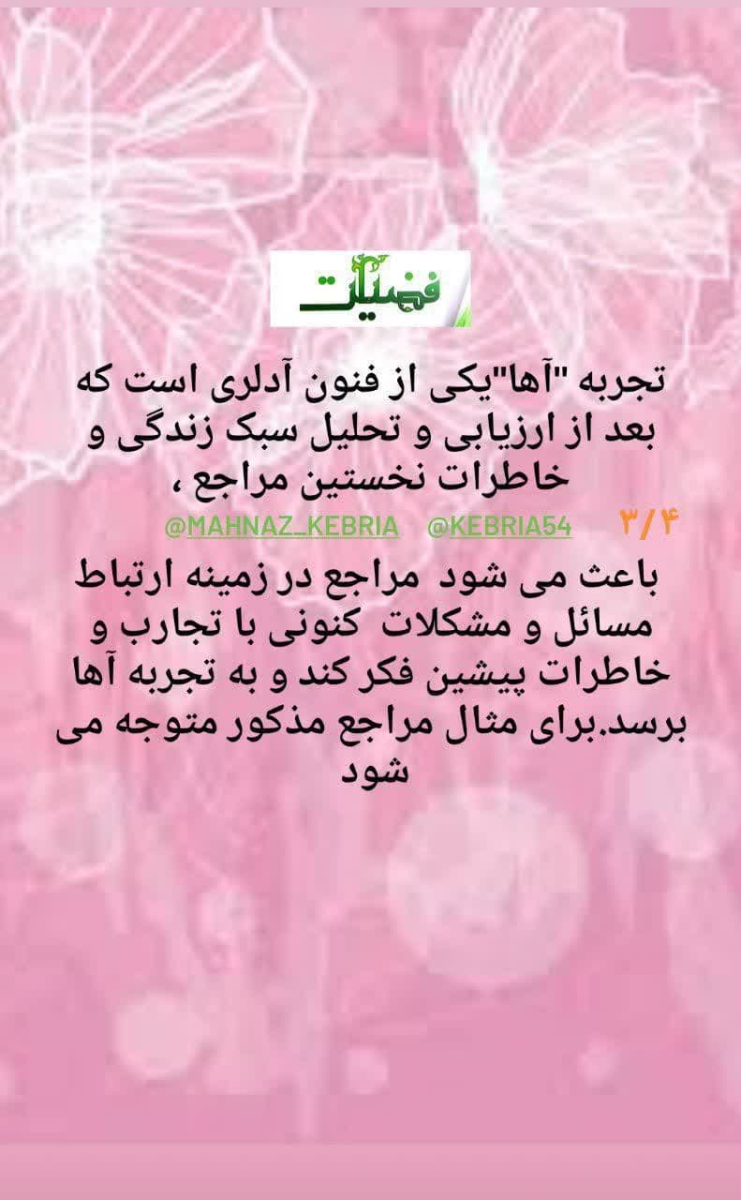 تجربه "آها"یکی از فنون آدلری است که بعد از ارزیابی و تحلیل سبک زندگی و خاطرات نخستین مراجع ، باعث می شود مراجع در زمینه ارتباط مسائل و مشکلات کنونی با تجارب و خاطرات پیشین فکر کند و به تجربه آها برسد.برای مثال مراجع مذکور متوجه می شود تأییدطلبی و مهرطلبی من ریشه در خاطراتی دارد که در کودکی ام شکل گرفته است. در بچگی برای شیرینی به دیگران وابسته بودم و حالا زمانی از خود راضی هستم و خوشحالم که به دیگران تکیه کرده باشم،اها