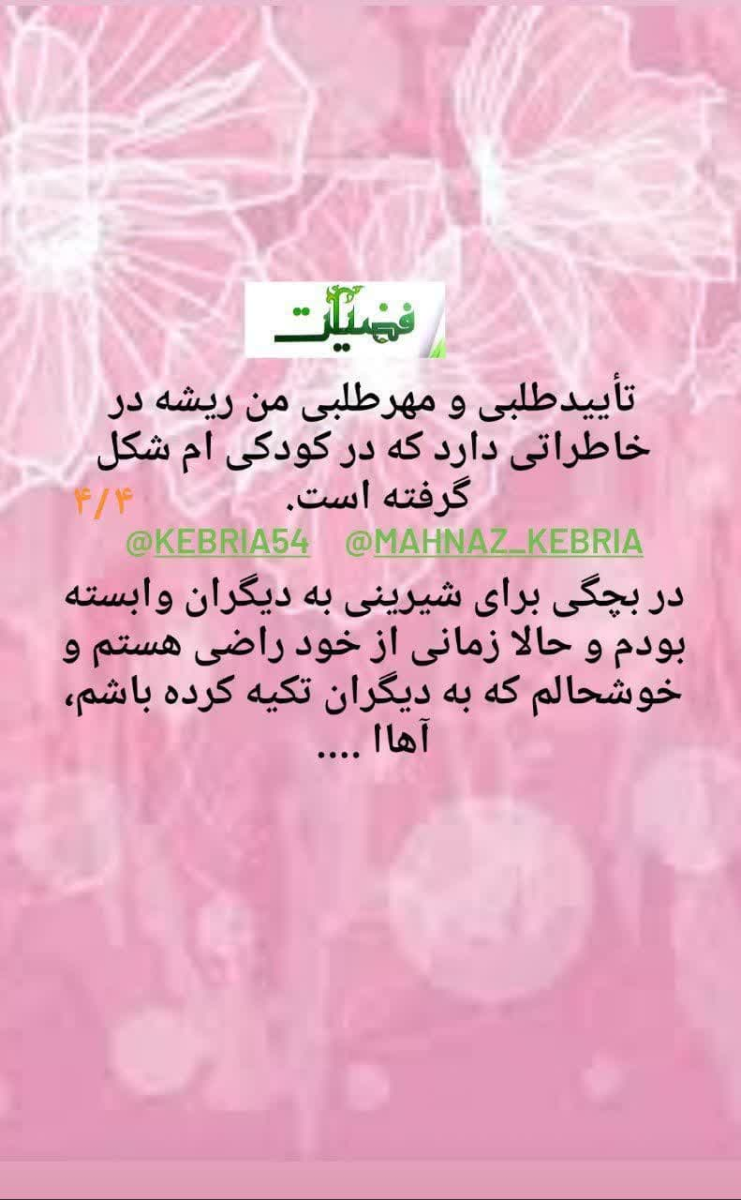 «یادم هست من هفت سالم بود که مادرم هر بار شیرینی یا شکلاتی می گرفتند، بالای یخچال می گذاشت و من دستم به شیرینی نمی رسید، من که تک پسر و دو تا خواهر داشتم به خواهرام حکم می کردم که آنها مانند چارپایه کنار یخچال بایستند و من روی شانه آنها می رفتم و شیرینی می خوردم»
